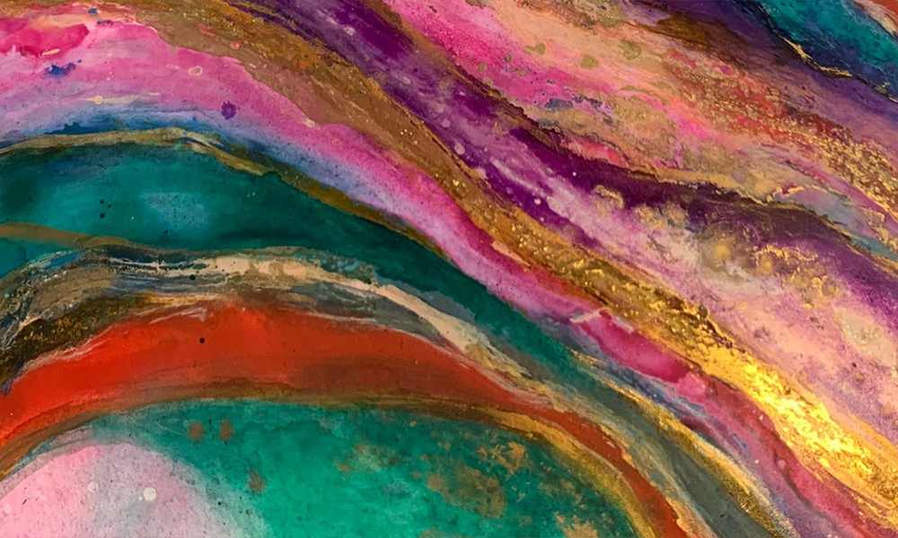 Fluid inks and acrylics create vibrant, energetic movement. No two artworks are the same — each one is truly one-of-a-kind.
