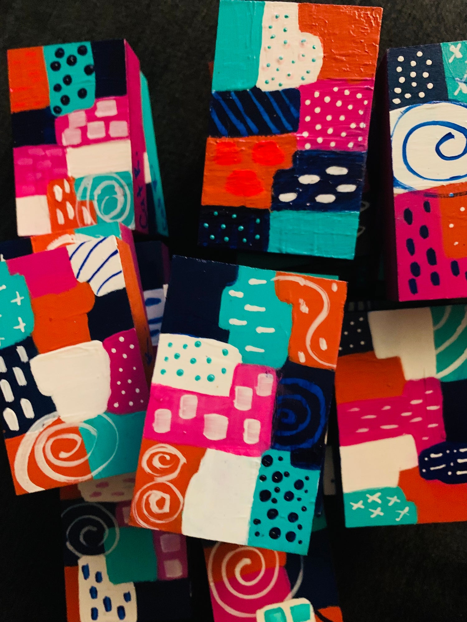 Modern mini abstracts created with lots of color and pattern. I created three different color stories for this collection.